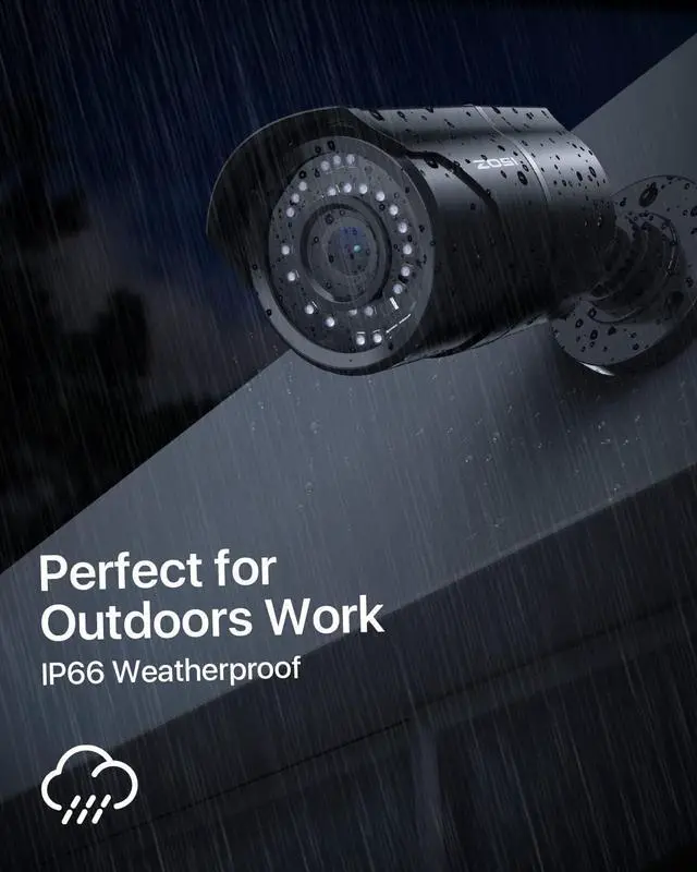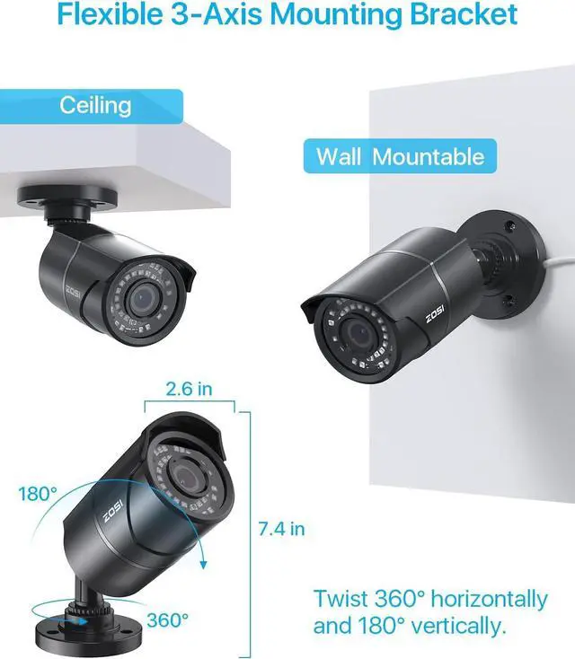 (3). [ High Quality Materials & IP66 Weatherproof ] __ This camera is made of high-quality metal materials and comes with a 3-axis camera stand, a bracket for cable management, and an IP66 weatherproof aluminum housing. This makes it ideal for hassle-free use in rainy or snowy weather.