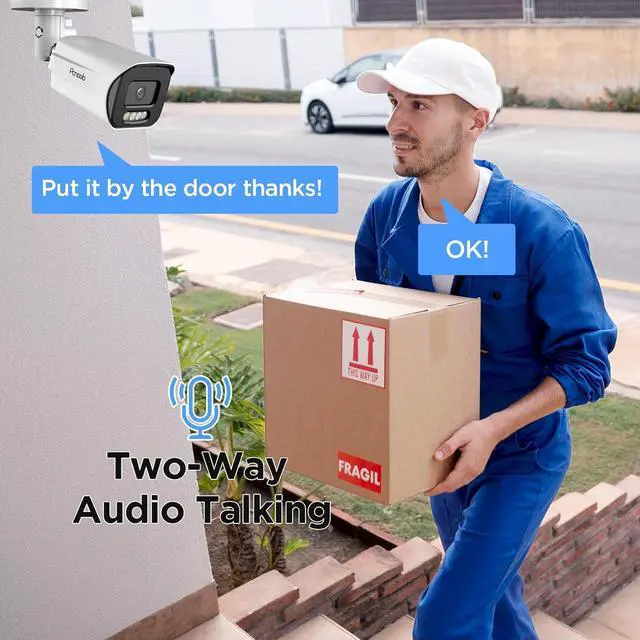 2-Way Real Time Talk:- This security camera equipped with a built-in microphone and speaker, allowing you to easily listen to and talk with visitors, or warn off intruders.
