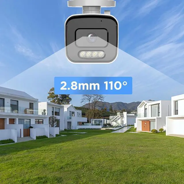 Overview: 5 Megapixels ultra high definition with 2592 x 1944 resolution, and build with 2.8mm wide angle lens, field of viewing up to 110 degree. Smart dual light full color night vision, the IR light is normally on with b/w video for less standby power consumption to reduce light pollution, when a person is detected, the warm light turns on and the camera records the full-color video, when the person is out of the monitored area, the light turns off and turns back to normal IR lights.