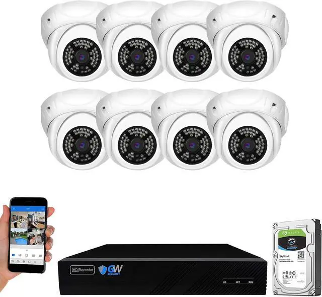Max 8.0 Megapixel Full HD Realtime Recording 8 Channel Onvif 4K NVR with (8) 5MP 1920P Weatherproof POE H.265 IP Dome Cameras (Built-in 3.6mm megapixel HD Lens for wide view angle and 48Pcs Infrared LED, View up to 130ft IR Distance)