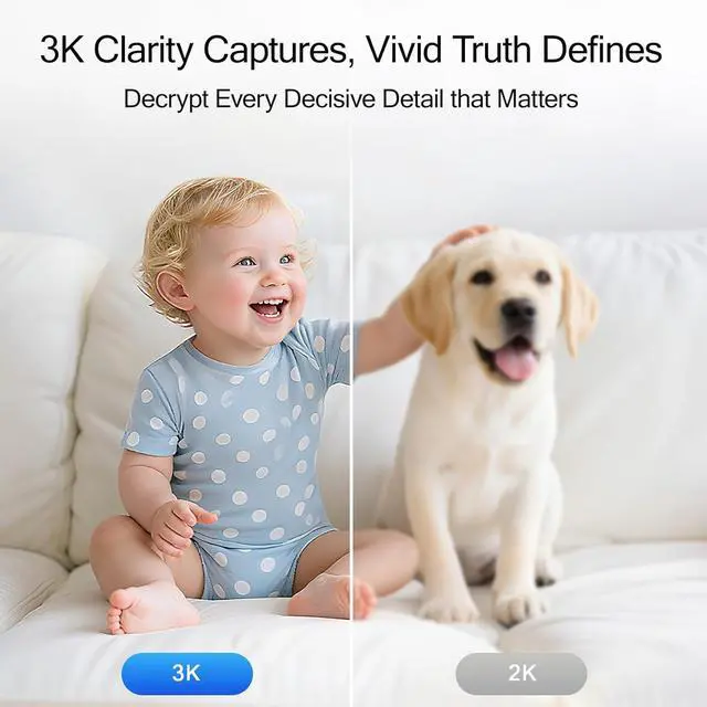 Baby Camera Monitor in True 3K UHD: Real 3K UHD (not upscaled fakes!) shows if the pacifier's cleanor the cat's plotting mischief. Night Vision 2.0 (no creepy red glow) protects your baby, cat, or dog's sleep cycles. Mom verified: 'Finally see who's sneaking midnight snacks!' ldeal for baby/pet monitoring with crystal clarity