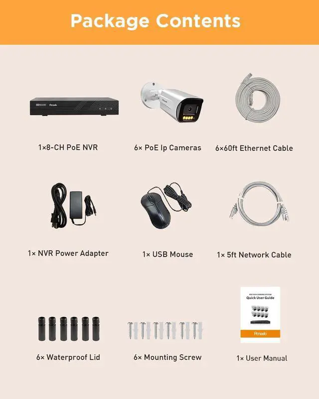 Plug and Play: Benefitted by PoE technology, Panoob PoE NVR system transmits video, audio and power combined through one cat5e network cable, which can provide you an extremely easy way for project installation, it is perfect for beginners and DIY enthusiasts to build their own video surveillance systems.