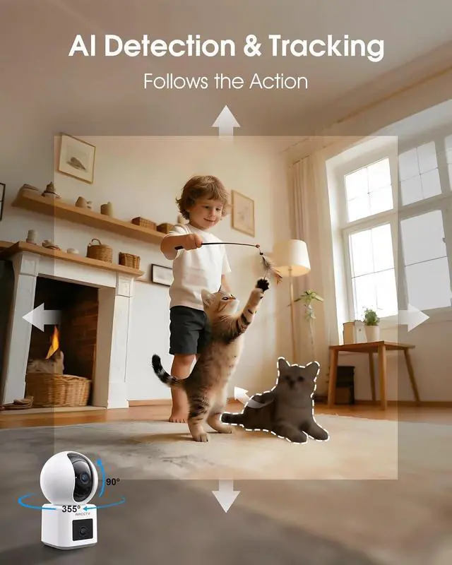 Synchronized AI Tracking & Alerts. Double the intelligence for your home. Both units function as a smart dog camera or security guard, using AI to detect and track motion automatically. If movement is detected in the garage or the living room, you receive instant alerts via the pet camera indoor with phone app. You can manage both security cameras from one app, ensuring that whether its a package delivery or a playing cat, you never miss a beat.