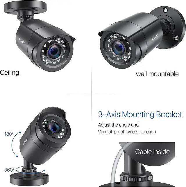 Indoor and Outdoor use Aluminum Metal vandal proof & waterproof can withstand the toughest of outdoor conditions, 3-Axis Camera Stand, cable through bracket for hassle free use in rainy or snowy days.