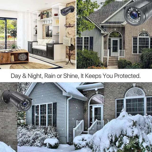 1080p Camera with night vision4pcs 1080p Bullet Surveillance CCTV Camera, each camera equipped with 24pcs IR LEDs, IR 80ft night vision, 3.6mm lens that wide enough to cover about 90°view. (Depended on the using environment)