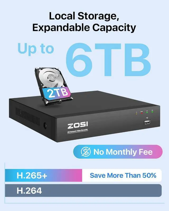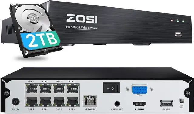 Upgrade 16CH ExpandableOur 4K 8-port NVR can be expanded up to 16 PoE cameras with an additional PoE switch (not included). It allows you to flexibly add more 4K, 5MP, 4MP or 3MP ZOSI POE bullet or dome cameras.