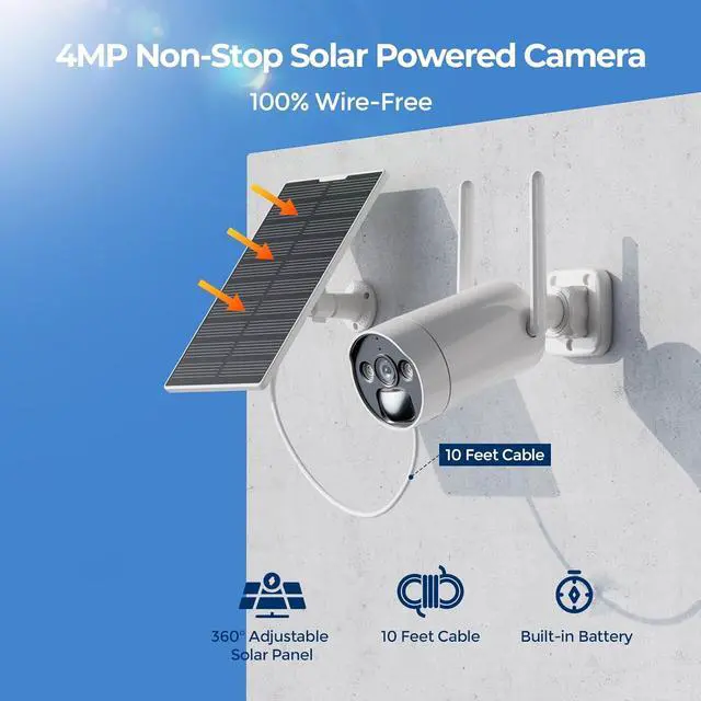 1Non-stop Solar Power2Support Watching Locally 3No Monthly Fee4100% Wire-Free5Color Night Vision Support for adding privacy zones in APP