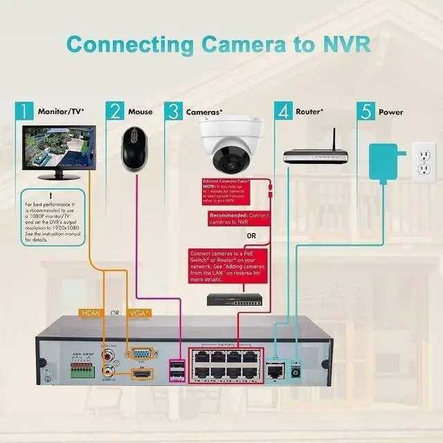 Easy Power-over-Ethernet installation. PoE (power over Ethernet) technology enables you to only connect 1 cable to the NVR and camera. Proving power and transferring video data, PoE is the fastest and easiest form of wired camera installation in today market.