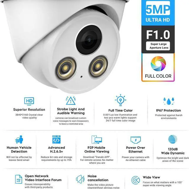 5MP resolution (30fps@5MP 2592 × 1944)featuring the latest CMOS1/2.8" image sony sensor,allow you cover more ground,always keep your safty