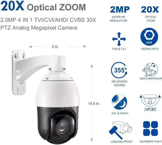 NOTE BEFORE PURCHASING1. If your DVR is not compatible with AHD/TVI/CVI Video formats, the camera will not produce any video output. 2. If your DVR lacks an RS485 input, the camera's pan-tilt-zoom (PTZ) functionality will be inoperative. Suggest to buy a PTZ keyboard for this camera, Please search ASIN: B08YVQ4XLC