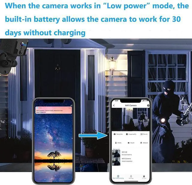 Powerful Battery LifeUndassenk Spy camera with built-in 2600mAh rechargeable lithium battery, it has two working methods to improve the battery life. 1: All-day Recording Mode: The hidden camera can record 24/7 in a loopfor up to 9 hours. 2:Low Power Mode: In this mode, the recording can last for 15 days; if the camera does not detect motion within 30 seconds, it will enter the sleep state and stand by for two months. Entering the App can automatically wake up the device.