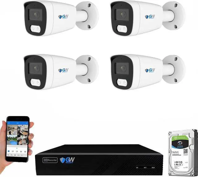 Max 8.0 Megapixel Full HD Realtime Recording 8 Channel H.265 4K NVR with (4) 5MP 1920P Weatherproof POE H.265 IP Bullet Cameras (Built-in microphone and wide angle lens)