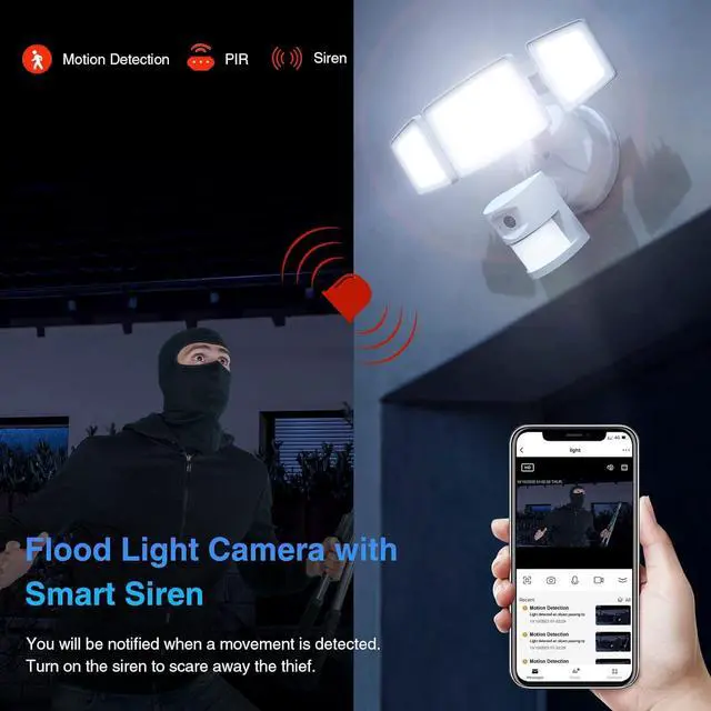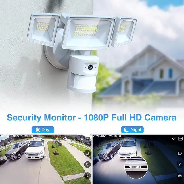 • [Two-Way Talk] The flood light security camera has a built-in microphone and speaker, which can provide 2-Way Talk, you could talk and listen to visitors, and also have a real time conversation with the courier even