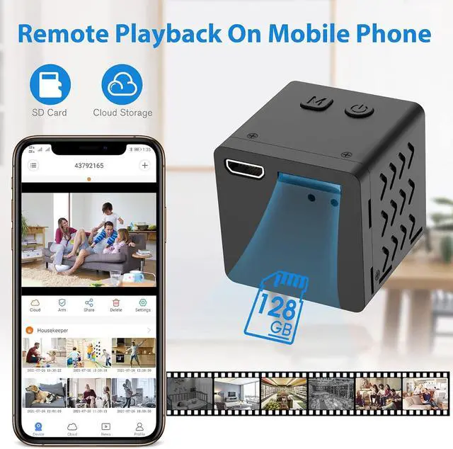 Enhanced Motion Detection Technology - This spy cam with the upgraded intelligent motion detection, you can set Time/Space detection range and sensor sensitivity manually. Once a motion is detected, the small camera will send alarm notification with images to your phone. You can log into the App to see whats going on in real time and never worry about missing something important.