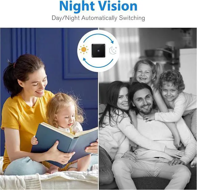 Automatic Switching Night Vision Spy Cam- This nanny camera has a good performance in recording with Full HD video resolution. The wifi nanny cam features covert design of 8 IR lights with non-luminance and 20 feet night vision distance. Greater scope of vision view and captures details clearly even in dark environments. When the SD card is full (Up to 128G, not included), the newest video will overwrite the oldest one automatically.