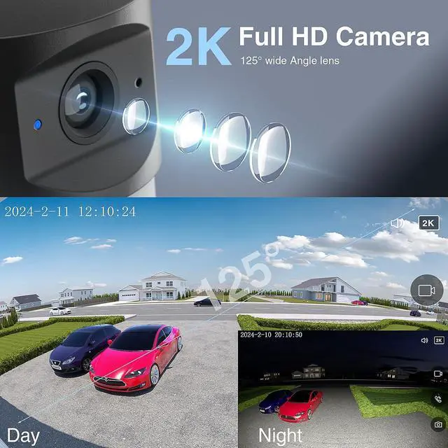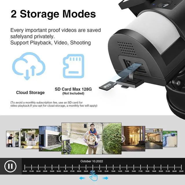 Safety Monitoring: The floodlight cam wired is equipped with a 2K HD camera, 125°wide angle, which can ensure detailed full color event recording even at night. The flood light camera support cloud storage and the Micro SD card up to 128 GB(not included)