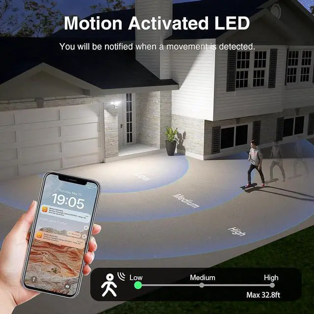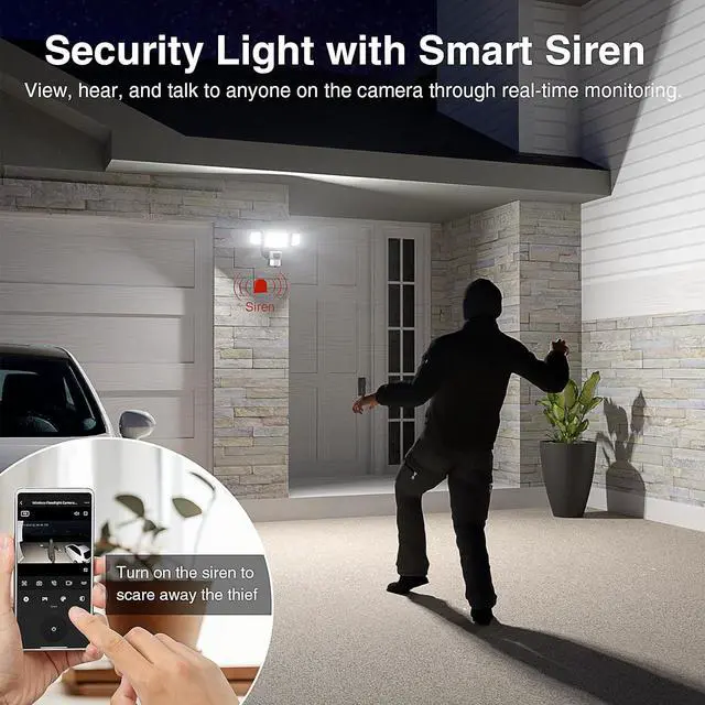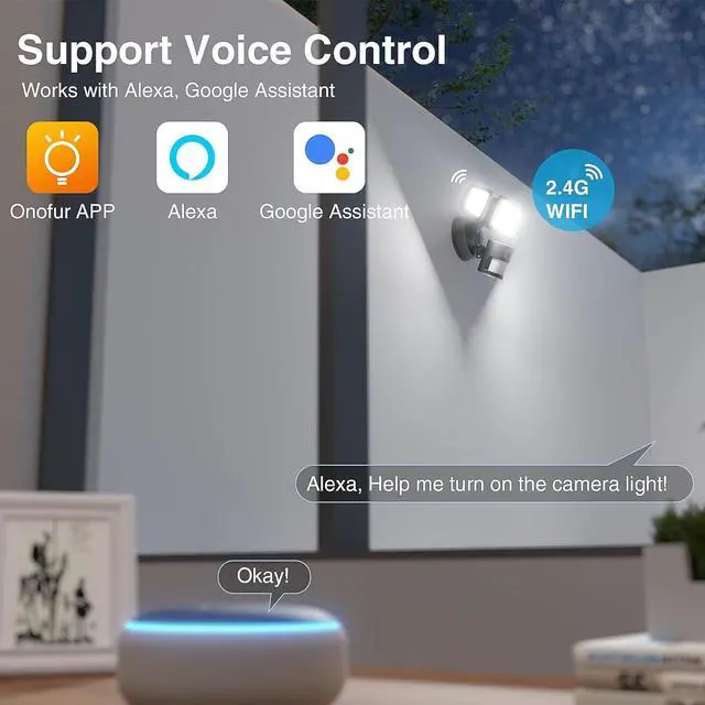 Real-Time App Control: This smart floodlight camera is designed to safeguard your home and your finances. Stay connected to your home through your phone with seamless integration with the outdoor floodlight camera. Enjoy Alexa Show compatibility for monitoring and Alexa voice control functionality.(Supports 2.4 GHz WIFI only)