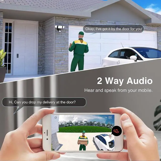 Two-Way Talk Capability: Equipped with a built-in microphone and speaker, the floodlight security camera allows for seamless two-way communication. Engage in conversations with visitors and interact with delivery personnel in real time, even when you are away from home