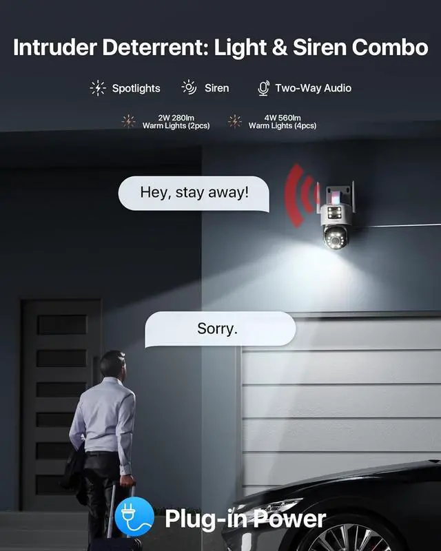(3). [ Two-way Audio & Customizable Voice Alerts ] __ ZOSI Dual-Lens wireless security camera features a built-in speaker and microphone, enabling real-time communication with visitors or deterring unwanted intruders remotely. Moreover, the outdoor camera allows you to define crucial monitoring zones and personalize voice alarms. Record a welcoming message for guests or issue warnings to prevent theft according to your preferences.