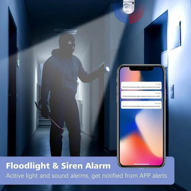 Motion Tracking & Instant AlertsOnce it detected motion, the wireless light bulb camera wifi will automatically track and record moving objects, while triggering sound and light alerts to scare thieves and push real-time alerts to your phone.