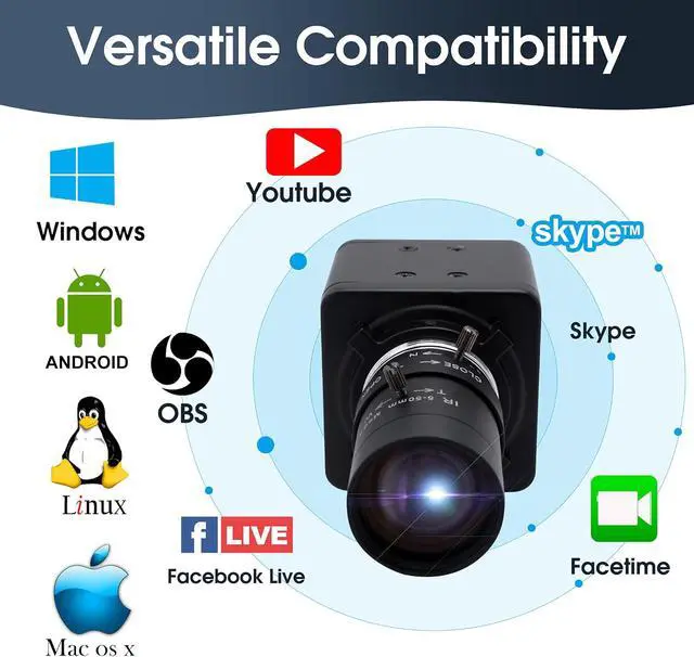 Best Universal Compatibility - 4K webcam usb camera with mini aluminum case is versatile for Skype, OBS, Zoom, GoToMeeting, Facebook LIVE, and YouTube Livestreaming services, widely works with WinXP/Vista/Windows 7/8,Windows 10 Linux with UVCabove linux-2.6.26MAC-OS X 10.4.8 or later Wince with UVC Android 4.0 or above with UVC. Tips:There may be a little dark corner on the edge of the screen image .