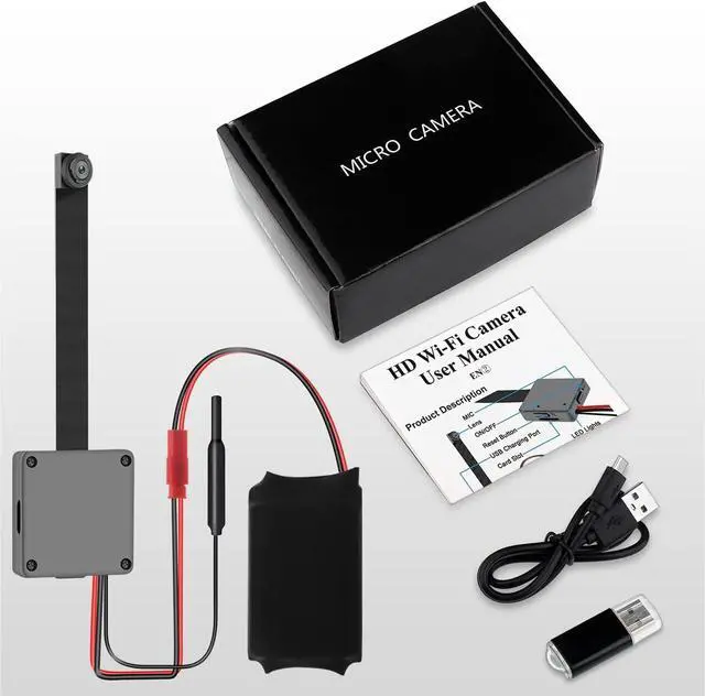 [Small Size Flexible Mini Hidden Camera ]: It is the smallest hidden spy camera for home office security, the body size only 1.14 "*1.1"*0.31", weight 46g, can install it on all kinds of places, such as living room, porch, front door, garage and car etc.