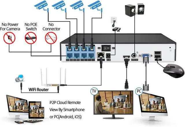 [ Plug & Play ] A real plug and play network video recorder! It features POE (Power over Ethernet), with a single network cable connecting each of your IP cameras to the NVR for both power supply and video signal transmission. Dowload the App to instantly access live viewing and playback.