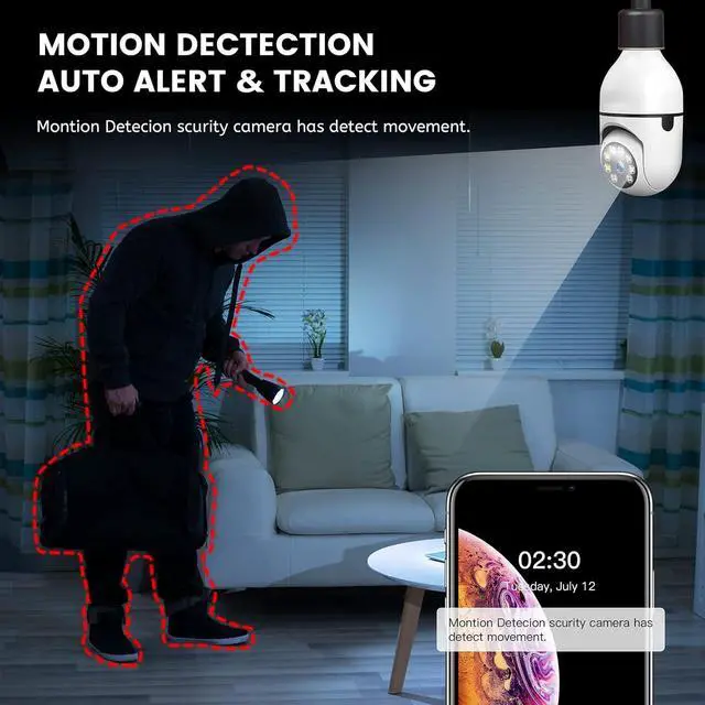 Wireless WiFi bulb camera adopts a high-sensitivity motion sensor to detect moving objects. When the camera detects the movement of an object, it records the movement and notifies you through the APP.