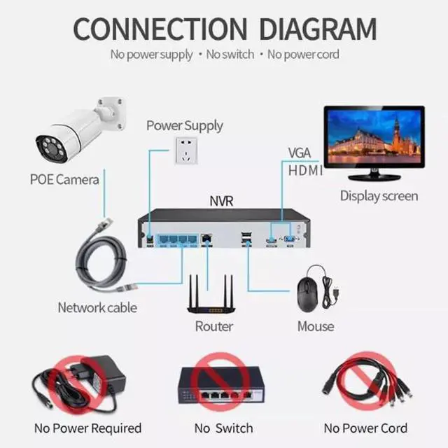 [ POE Power Supply, Plug and Play ] Using POE network cable power technology, power can be provided through a network cable, and videos can be transmitted. There is no need to consider the layout of the power line, and the location of the power outlet, which is easy to maintain. Even if you have no installation experience, the same can easily be done.