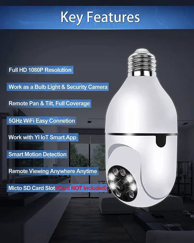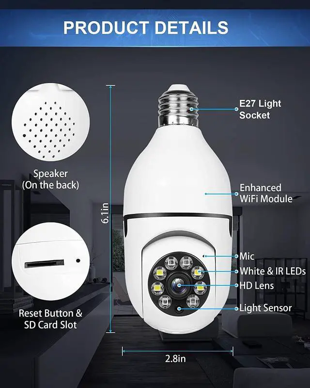 This camera can be installed with an ordinary E27 bulb base(110V-240V) without additional installation steps. Then you only need to connect the camera system to the router, open the application and set the camera in minutes.