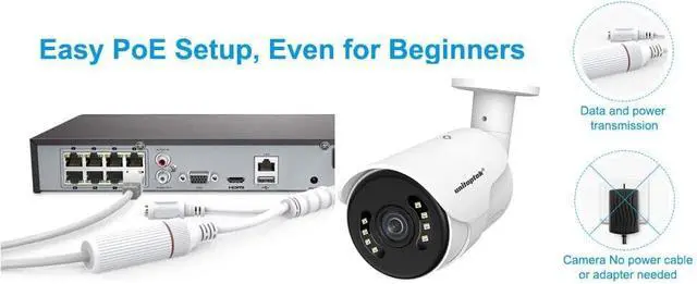 Ultra HD 4K PoE CameraThis 8MP PoE security camera makes smoother and faster streaming of online videos. Superior 4K (8 Megapixel / 3840x2160) HD resolution allows crisp and top-quality monitoring and recording. 3.6 mm lens allows you to cover more ground and keep more of what matters to you safe.