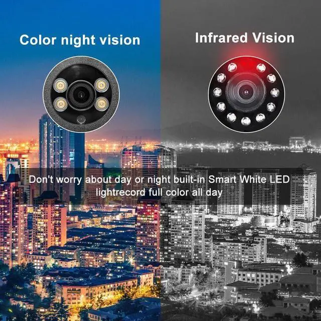 65ft Smart Dual Light Color Night VisionThis outdoor 8mp PoE camera enables you to view clear images with vivid colors in live video and playback. Once an intruder is detected, the camera's lights will be automatically turned on to warn potential perpetrators. Besides, you can change the night vision mode to IR night vision.