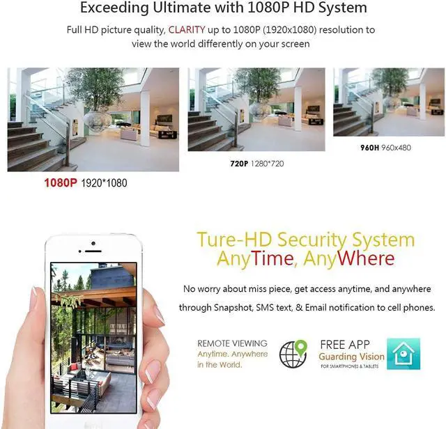 User friendly setup instructions including QIG (Quick Installation Guide) for PC based VMS/CMS integration. Cloud based cell phone APPs for both Android and iPhone without confusing port forwarding, and real time Snapshot alarm notification. Regular Mode: 1080P resolution up to 12FPS, 1080P Lite (960x1080) and 720P/under) can up to 30FPS. US Local Support (Office Hour 8:00AM - 5:30PM, Mon to Fri, Pacific time). 3 Years DVR/2 Years HDD Manufacturer Warranty.