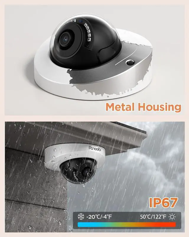 This 5MP IP cameras display in a 2592x1944 detailed image, clear and well-defined video ensures detailed live viewing and recording, you will truely enjoy crystal-clear footage during day and night.