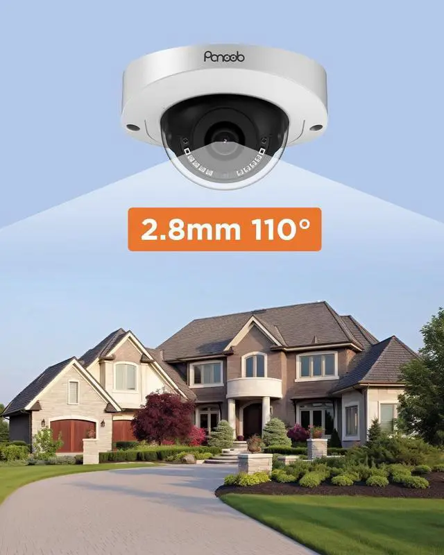 Featuring 2.8mm fixed lens with IR-Cut function, 110° viewing angle, up to 82ft IR Night Vision, IR-cut filter helps to capture surroundings in low lighting conditions, can clearly monitor everything even at night.