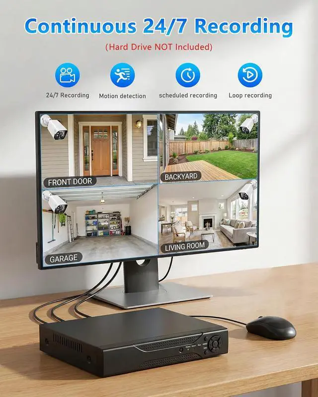 • Reliable 24/7 Continuous Recording: Upgraded H.265+ saves more storage space and uses less bandwidth, recording videos longer and smoother viewing.
