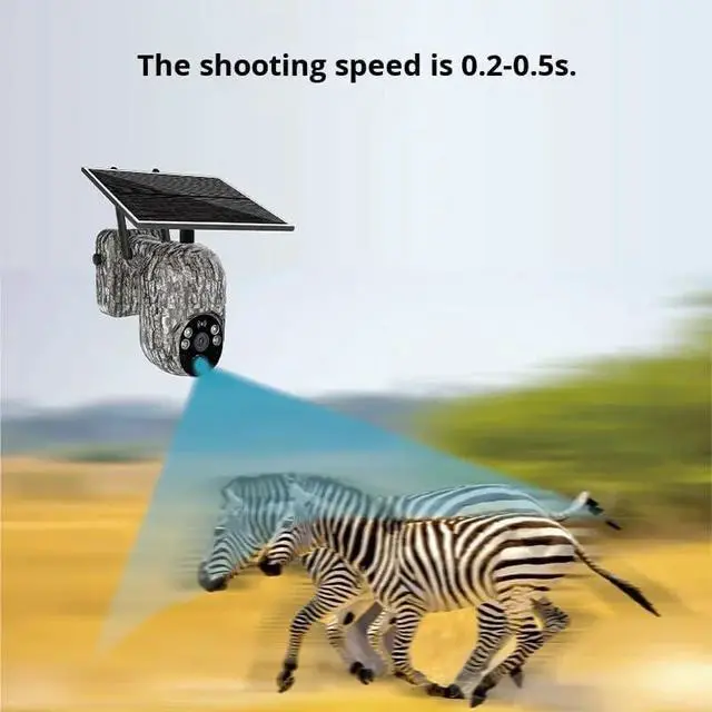 Efficient solar charging+long battery life Equipped with high-efficiency monocrystalline silicon solar panels, they can work with just enough light; Built in large capacity lithium battery, solar panel continuously charges the battery, providing uninterrupted power, even on cloudy days, completely eliminating the problem of no power supply and wiring in hunting areas. 4G supports remote real-time viewing, and deep mountain hunting areas can also be easily covered.