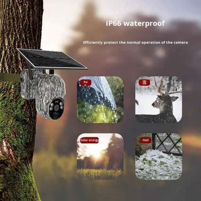 Outdoor camouflage design+hunting adaptation, equipped with camouflage appearance for safe and invisible protection in hunting areas, seamlessly integrating into hunting environments such as forests and grasslands, providing concealed monitoring without disturbing prey. Support 24-hour recording of hunting area dynamics to provide evidence support for legal hunting. It is the 'invisible sentinel' for hunting area management.