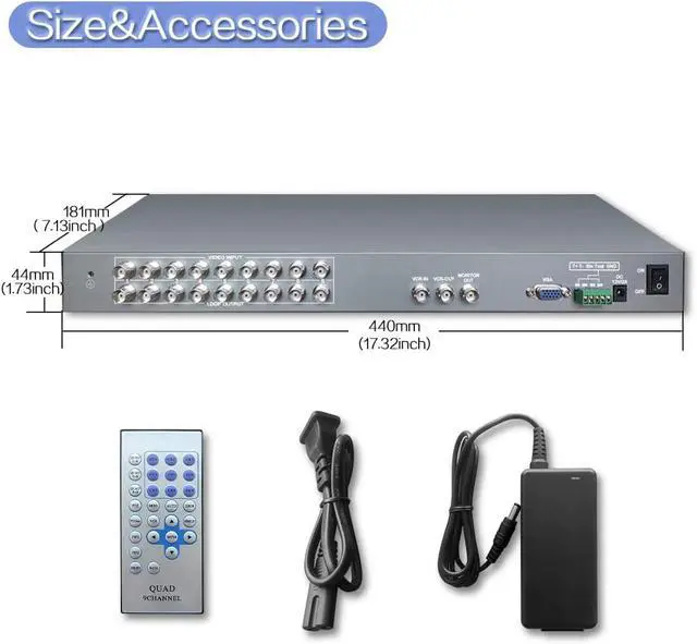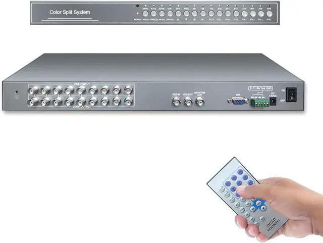 9Ch Realtime Color Video Quad Multiplexer Processor for CCTV Surveillance Cameras, Digital Zoom, Video Freezing, Motion Detection, VGA Output, RS485, RS232