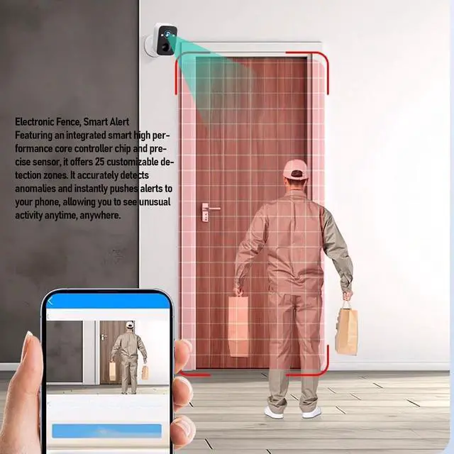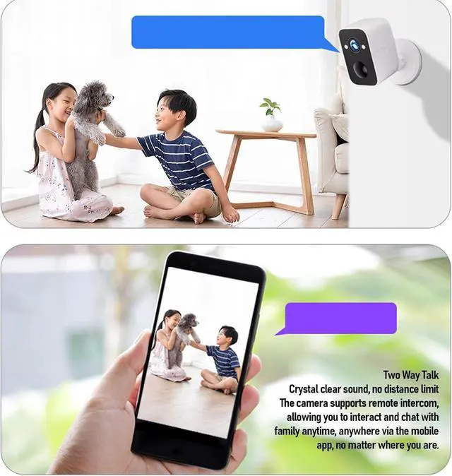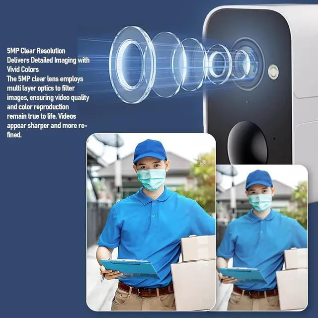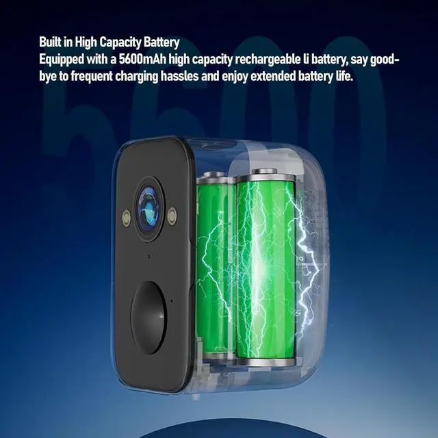 Battery Powered Convenience: Featuring a built in 5600mAh battery and wireless connectivity, this security camera operates without power cords, freely check your home anytime, anywhere.