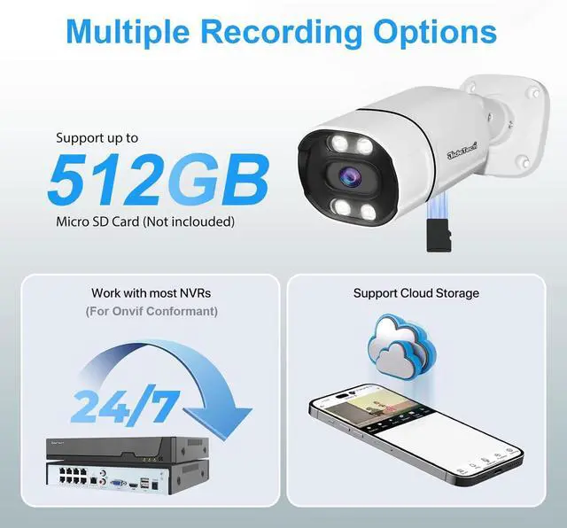 High Efficiency Video Coding & Compatible: This 5MP poe security camera outdoor adopts the high-efficiency video encoding standards and supports H265+, H266, H264 video compression, which not only transmits clearer and smoother video, but also saves disk storage space. Supports RTMP/RTSP/for ON-VIF connectivity protocol, compatible with Jidetech as well as most of the NVRs on the market.