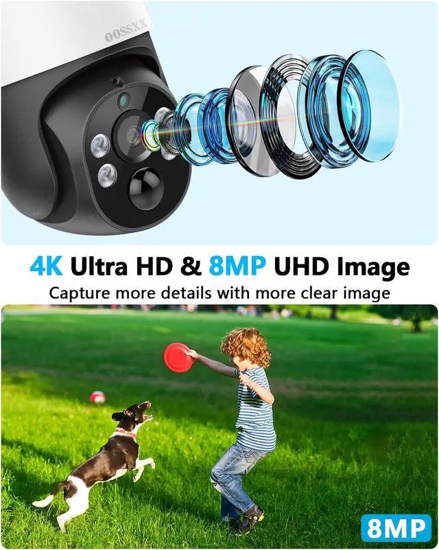 OOSSXX (10 UHD Monitor) 4K/8.0 Megapixel & PTZ Digital Zoom 2-Way Audio PoE Outdoor Camera Home Security Camera System Wired Outdoor Video Surveillance IP Camera System