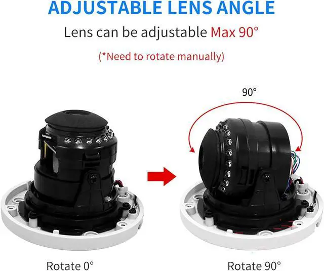 Clear Night Vision up to 30ft Equipped with infrared LED lights, the Full HD 5MP security camera ensures sharp and crisp images in the night with the camera's automatic IR-CUT filter, During the day, the visible distance is 60 feet, and at night and the night vision can be up to 30ft