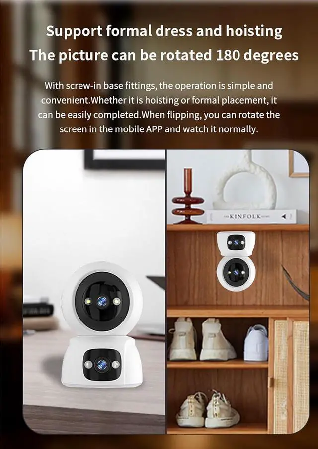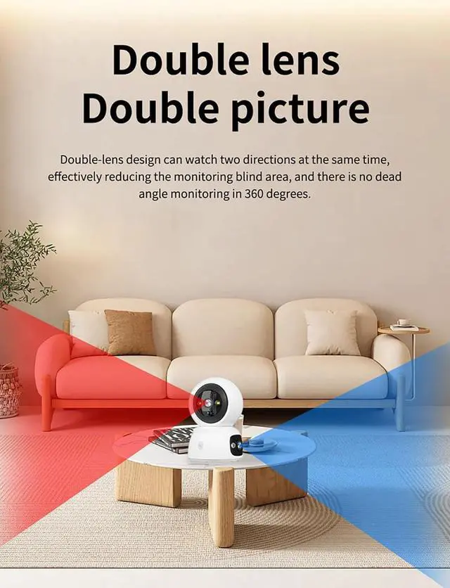 Dual LensThis Dual Lens cameras is a premium home security cameras that supports both indoor and outdoor use,it captures every corner of your home for all-around protection.