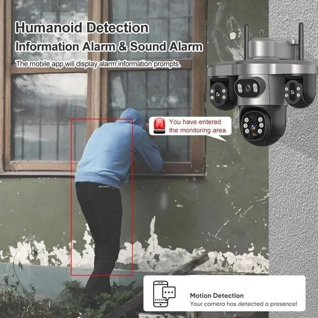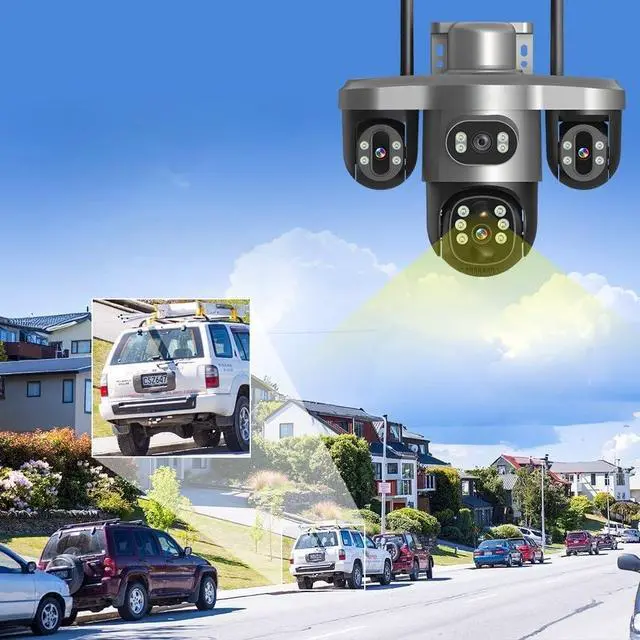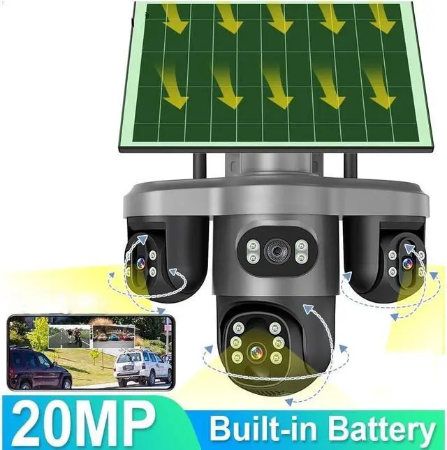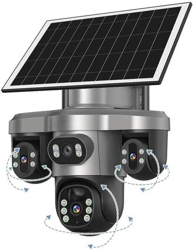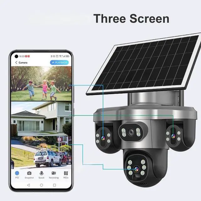 Three Screens Outdoor Surveillance Camera Security WiFi 3 PTZ Lens CCTV Automatic Tracking V380