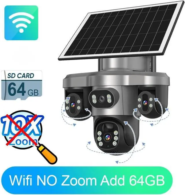 Three Screens Outdoor Surveillance Camera Security WiFi 3 PTZ Lens with 64GB Card CCTV Automatic Tracking V380