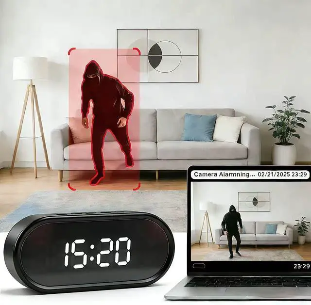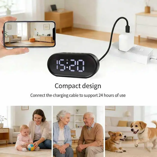 150 degree wide-angle lens: This hidden camera effectively covers large spaces with fewer blind spots, providing a complete view of living rooms, study rooms, baby rooms, or other areas. Very suitable for using hidden camera clocks in the nursery, or for apartment residents to use hidden cameras to ensure home safety - just one hidden device is needed to monitor the baby's play area, study countertop, or the entire small apartment.