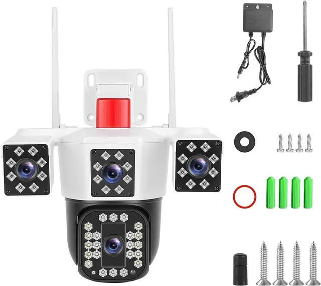 Eliminate Blind Spots with 360° 4-Lens SystemAchieve complete property coverage. This outdoor security camera comes with 1 fixed lens for stable and consistent view, 2 side cameras allow for manually 90° vertical & 180° horizontal adjustment, providing optimal positioning to cover critical areas, and 1 pan & tilt dome camera which can be controlled 90° vertically & 355° horizontally via App.This multi-lens system ensures full-area monitoring with 5x digital zoom to capture crucial details, leaving no area unwatched.