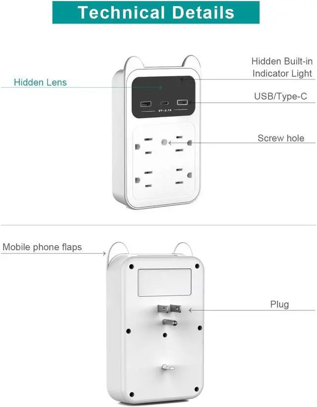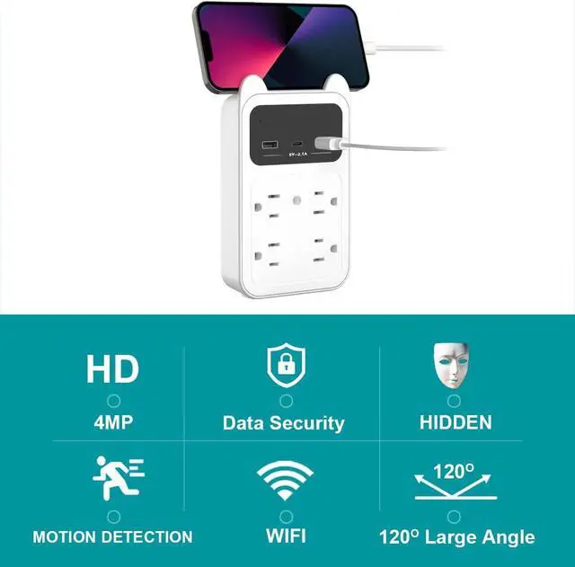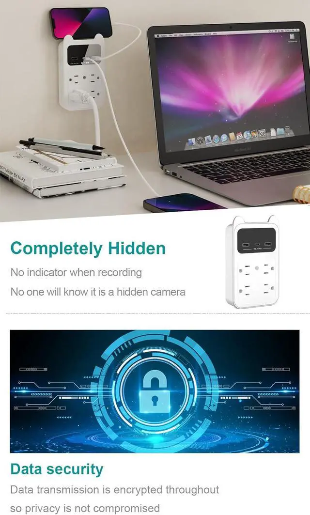 Hidden Camera OutletThis USB charger camera is designed as a functional wall outlet camera, blending seamlessly into indoor environments. As an outlet camera, it looks like a standard charger while providing reliable indoor security without drawing attention.