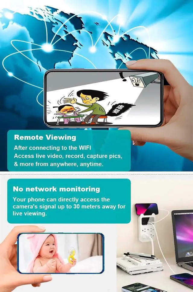 Remote AccessAccess live viewing remotely through a secure mobile app. This hidden camera outlet connects to 2.4GHz WiFi networks only (not compatible with 5GHz), ensuring a stable and reliable connection for everyday use.